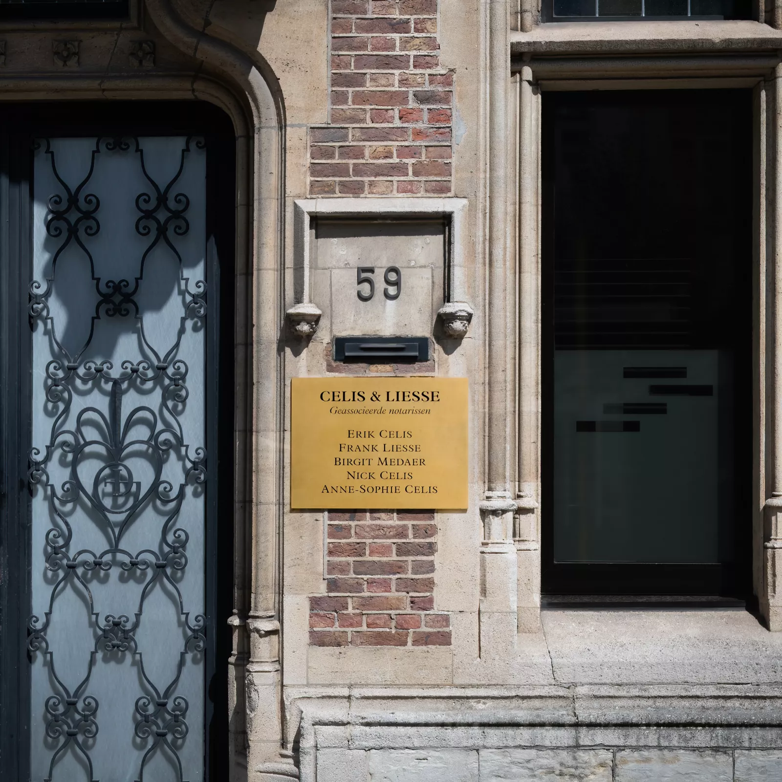 Brass oxidizes due to weather conditions and oxygen. This makes it important to maintain the plate every two or three months with copper polish, for example HG copper polish. Be sure to remove the copper polish from the engraving, otherwise it may discolour. With a horizontally brushed nameplate, it is important to respect the brush direction.