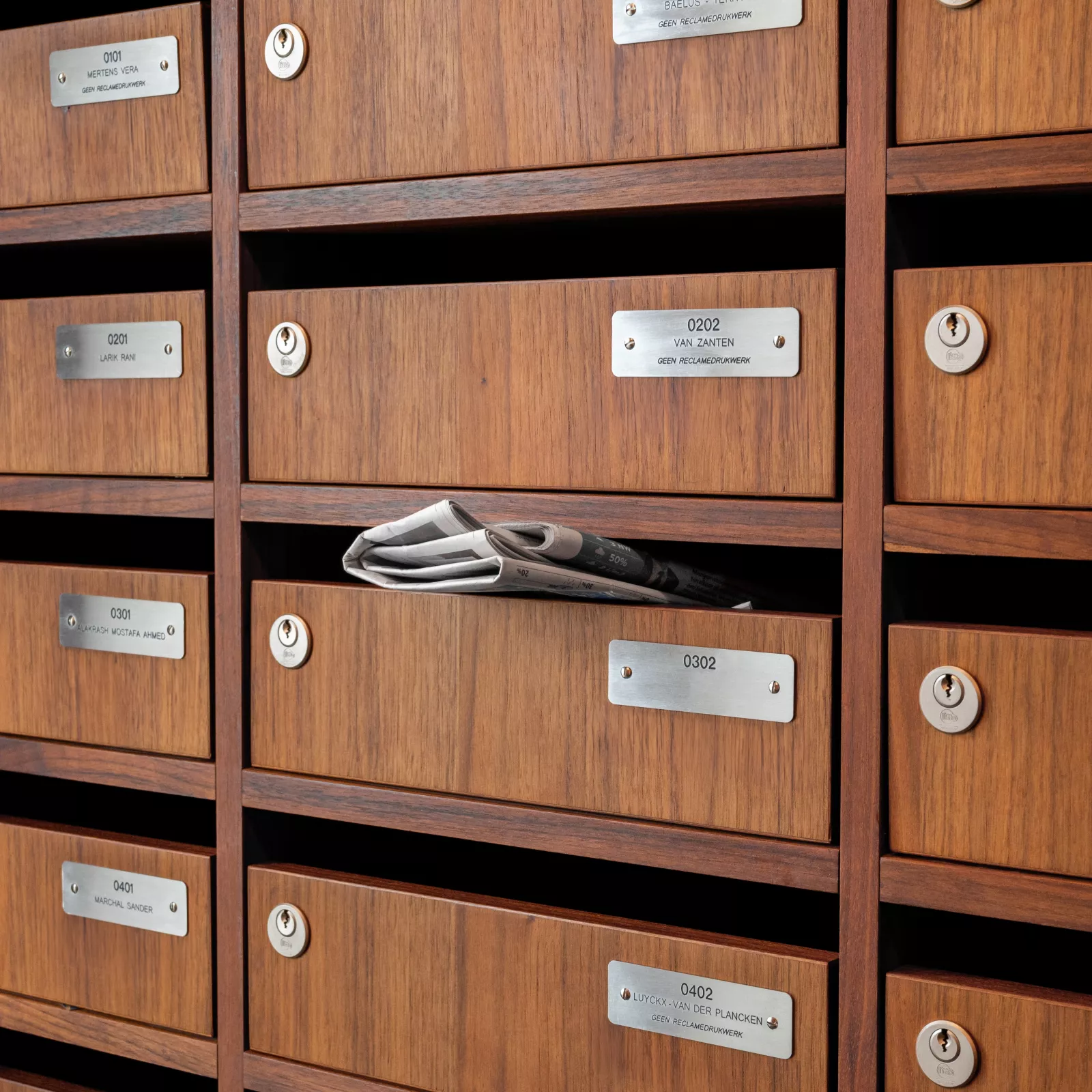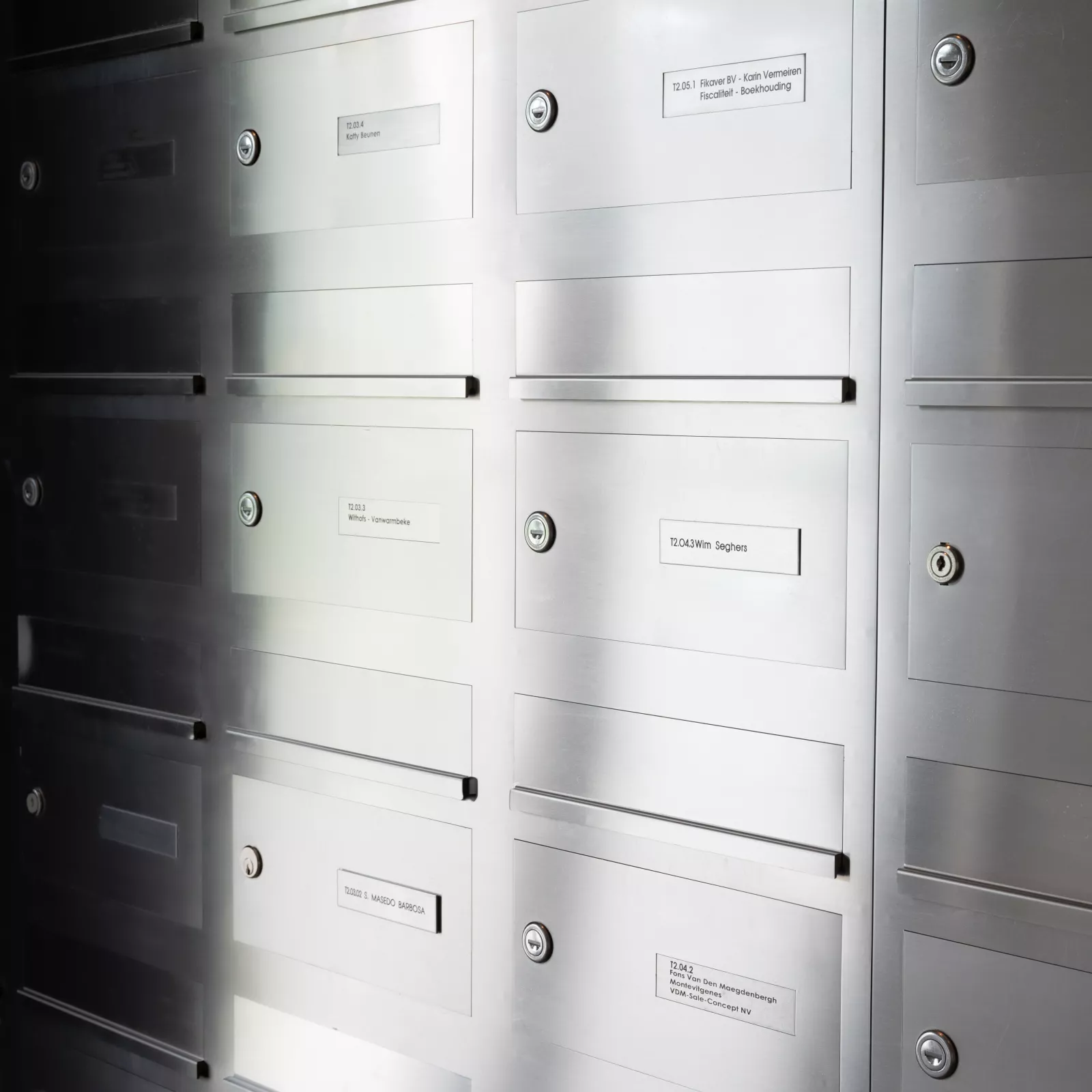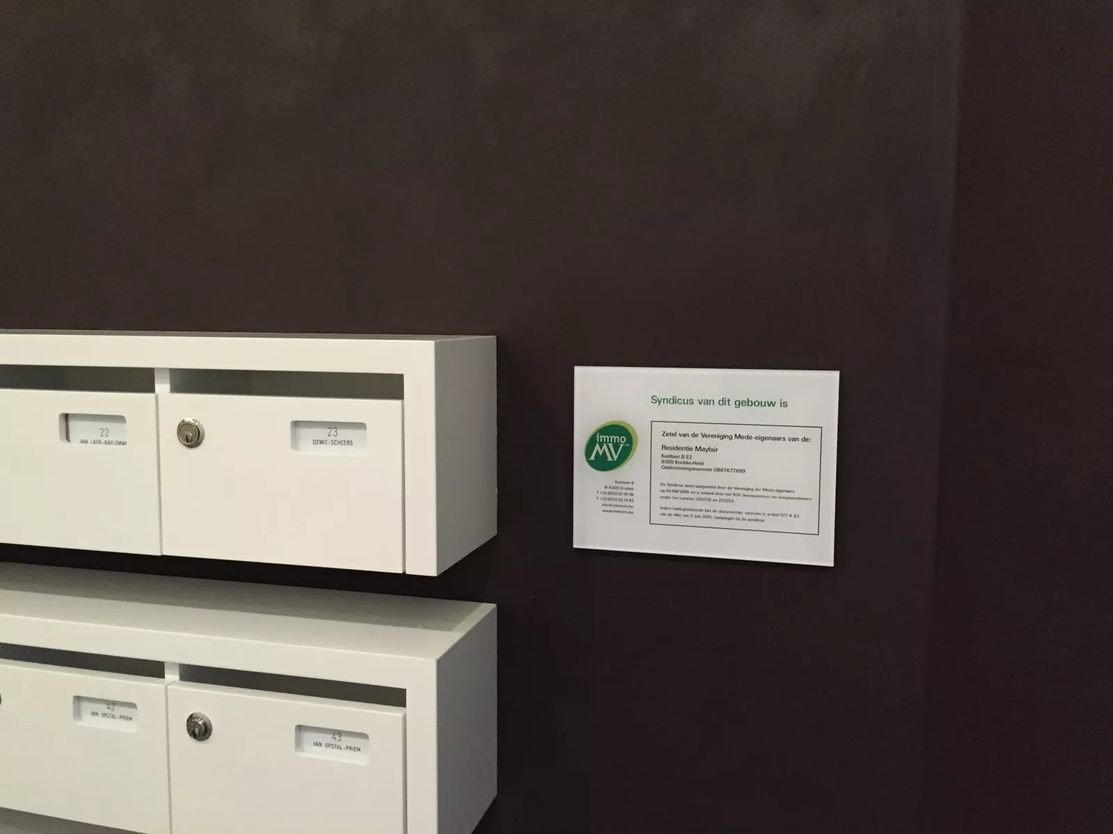 Nameplates (tags) for apartment buildings or houses exist in thousands of variants. That is why we make these nameplates completely according to your wishes and according to the existing plates that are already present. You choose the material, size, color, finish, fixing method, font, ... In terms of material you have the choice of different options: plastic, brass, aluminum or stainless steel, each in different colors and/or finishes. Depending on the material and the desired result, these are engraved or laser engraved. We work together with countless syndics who fully entrust us with the production of nameplates for buildings. If desired, these nameplates can even be placed. We often use the Infonorm system for (larger) buildings. This system guarantees flexibility combined with a professional presentation. This way, the different parts are easily replaceable. Ideal for when someone moves.