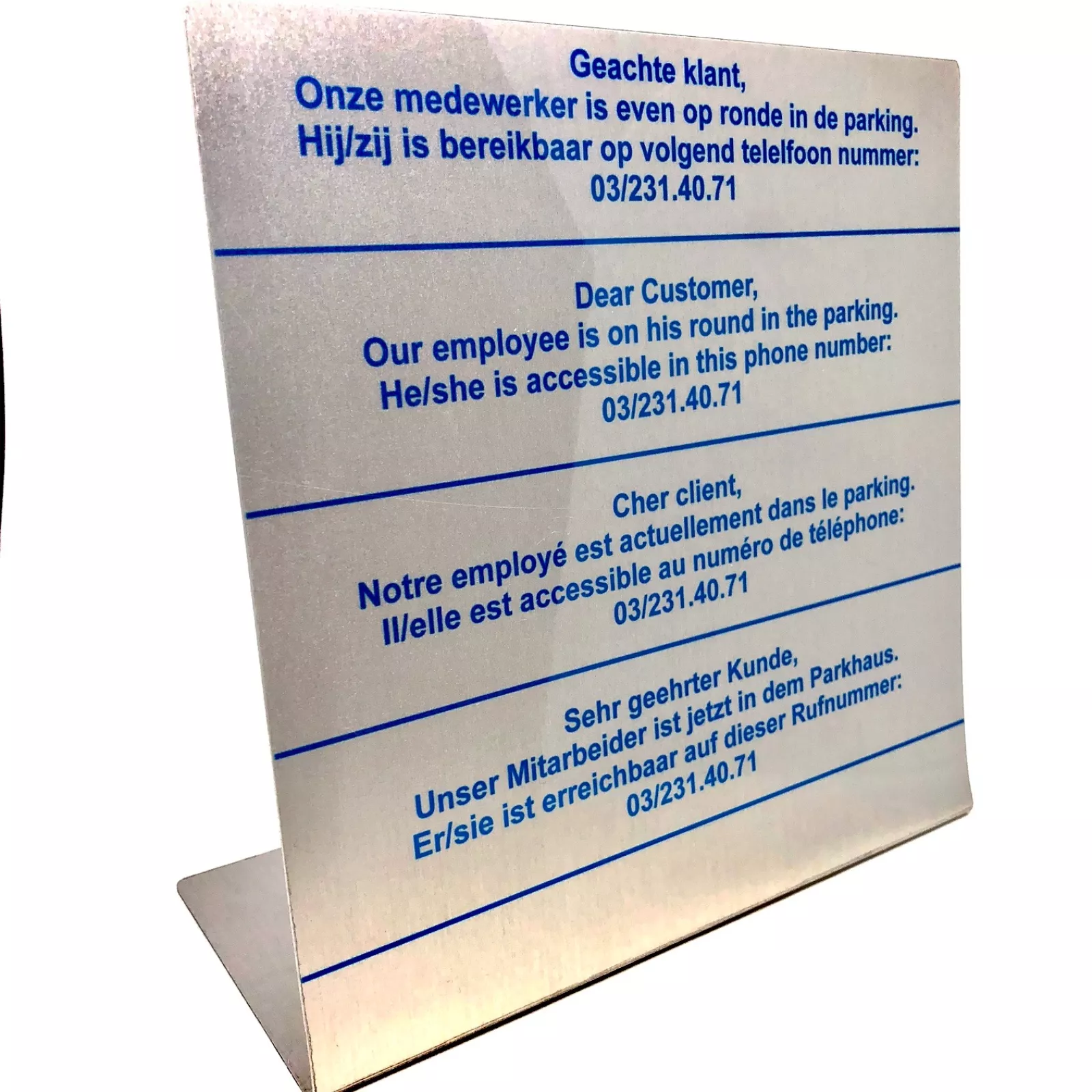 Nous proposons des plaques signalétiques imprimées dans une variété de matériaux et selon différentes techniques d’impression. Vous avez le choix entre, entre autres, le plastique, l’aluminium et le plexiglas imprimé au verso. Pour une plaque de nom en émail élégante, vous êtes également à la bonne adresse chez nous.