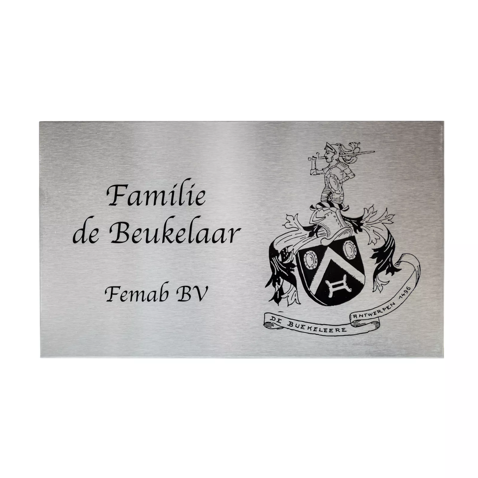 Naamplaten in roestvast staal (ook wel roestvrij staal of inox genoemd) zijn naamplaten van de hoogste kwaliteit. RVS is een metaalsoort met een hoog soortelijk gewicht en is uitermate bestendig tegen allerhande weersomstandigheden. Een naamplaat in roestvrij staal blijft gegarandeerd jaren in perfecte staat. Voor de afwerking van een inox naamplaat kan u kiezen tussen mat (geschuurd) en blinkend (gepolijst). Inkleuring van de gravure gebeurt in de kleur(en) naar uw keuze. Bevestiging van deze naamplaten gebeurt meestal met sierschroeven of gekleefd.